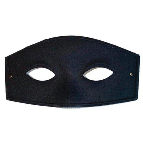 Plain black Zorro style masquerade mask with elastic