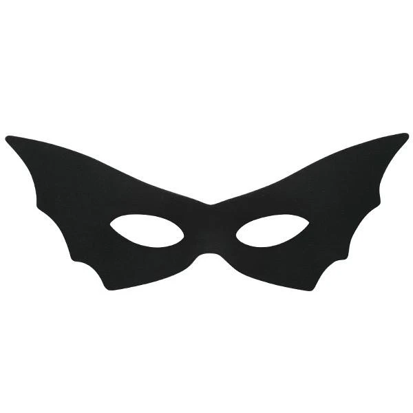 Fly away style eye mask with bat wing edges. Made from black felt with elastic strap. Excellent for Catwoman, Batgirl, and Batman. Made in Italy by Papillon.